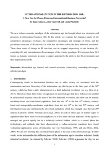 Alcacer, J., Cantwell, J. and Piscitello, L. (2016) Internationalization in the information age: a new era for places, firms and international business networks? Journal of International Business Studies, 47 (5). pp. 499-512. ISSN 1478-6990 doi: 10.1057/jibs.2016.22