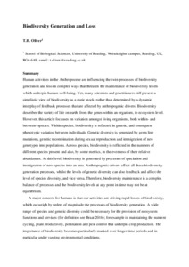 Human activities in the Anthropocene are influencing the twin processes of biodiversity generation and loss in complex ways that threaten the maintenance of biodiversity levels which underpin human well-being. Yet, many scientists and practitioners still present a simplistic view of biodiversity as a static stock, rather than determined by a dynamic interplay of feedback processes that are affected by anthropogenic drivers. Biodiversity describes the variety of life on earth, from the genes within an organism, to ecosystem level. However, this article focusses on variation amongst living organisms, both within- and between- species. Within species, biodiversity is reflected in genetic, and consequent phenotypic variation between individuals. Genetic diversity is generated by germ line mutations, genetic recombination during sexual reproduction and immigration of new genotypes into populations. Across species, biodiversity is reflected in the numbers of different species present and also, by some metrics, in the evenness of their relative abundances. At this level, biodiversity is generated by processes of speciation and immigration of new species into an area. Anthropogenic drivers affect all these biodiversity generation processes, whilst the levels of genetic diversity can also feedback and affect the level of species diversity, and vice versa. Therefore, biodiversity maintenance is a complex balance of processes and the biodiversity levels at any point in time may not be at equilibrium. A major concern for humans is that our activities are driving rapid losses of biodiversity, which outweigh by orders of magnitude the processes of biodiversity generation. A wide range of species and genetic diversity could be necessary for the provision of ecosystem functions and services (for definition see Braat 2016); for example in maintaining the nutrient cycling, plant productivity, pollination and pest control that underpin crop production. The importance of biodiversity becomes particularly marked over longer time periods and in particular under varying environmental conditions. In terms of biodiversity losses, there are natural processes that cause roughly continuous low level losses, but there is also strong evidence from fossil records for transient events in which exceptionally large losses of biodiversity have occurred. These major extinction episodes are thought to have been caused by various large-scale environmental perturbations such as volcanic eruptions, sea level falls, climatic changes and asteroid impacts. From all these events, biodiversity has shown recovery over subsequent calmer periods, although the composition of higher level evolutionary taxa can be significantly altered. In the modern era, biodiversity appears to be undergoing another mass extinction event, driven by large-scale human impacts. The primary mechanisms of biodiversity loss caused by humans vary over time and by geographic region but include: overexploitation, habitat loss, climate change, pollution (e.g. nitrogen deposition) and the introduction of non-native species. It is worth noting that human activities may also lead to increases in biodiversity in some areas through species introductions and climatic changes, although these overall increases in species richness may come at the cost of loss of native species and with uncertain effects on ecosystem service delivery. Genetic diversity is also affected by human activities, with many examples of erosion of diversity through crop and livestock breeding or through the decline in abundance of wild species populations. Significant future challenges are to develop better ways to monitor both the drivers of biodiversity loss and biodiversity levels themselves, making use of new technologies, and improving coverage across geographic regions and taxonomic scope. Rather than treating biodiversity as a simple stock at equilibrium, developing a deeper understanding of the complex interactions— between environmental drivers, and between genetic and species diversity — is essential to manage and maintain the benefits that biodiversity delivers to humans, and to safeguard the intrinsic value of the Earth’s biodiversity for future generations.