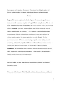 Development and evaluation of a measure of treatment knowledge in guided self-help for eating disorders in a sample of healthcare students and professionals.