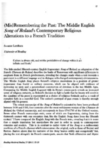 (Mis)remembering the past: the Middle English Song of Roland's contemporary religious alterations to a French tradition