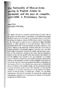 The nationality of men-at-arms serving in English armies in Normandy and the pays de conquête, 1415-1450: a preliminary survey
