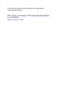 Throw away your books, go into the streets video: experimental video/animation/curation.