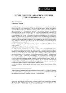 For Esther Tusquets, feminism was not so much a doctrine as an approach to life. Thus, just as her narrative work and opinion pieces are underpinned by a constant reflection on gender equality and gender identity, her work as an editor reflects a keen awareness of the discrimination experienced as part of the female condition. The fundamental thesis of this article, therefore, is that editorial practice can also be a form of feminist praxis: not only because of all that it entails for a woman to hold a position of responsibility in an economically and culturally male-dominated world but also because of the way in which many of the projects thereby undertaken served to spread and consolidate gender awareness. Particular attention will be given to the presence in the catalogues published by Lumen and RqueR, the two firms that Esther Tusquets founded and directed at different times in her life, not only of fiction written by women but also of comics and children's literature with a markedly vindicatory slant.