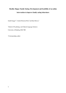 Snuggs, S. ORCID: https://orcid.org/0000-0001-5191-9517, Houston-Price, C. ORCID: https://orcid.org/0000-0001-6368-142X and Harvey, K. ORCID: https://orcid.org/0000-0002-6819-0934 (2019) Healthy happy family eating: development and feasibility of an online intervention to improve family eating behaviours. Healthy Psychology Update, 28 (2). ISSN 2396-8729