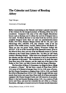 Morgan, N. (2016) The calendar and litany of Reading Abbey. Reading Medieval Studies, XLII. pp. 89-102. ISSN 0950-3129 (ISBN 9780704915541)