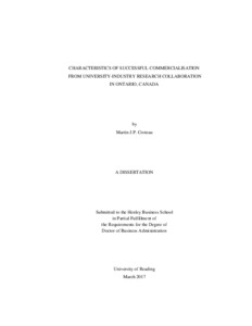 Croteau, M. J. P. (2017) Characteristics of successful commercialisation from university-industry research collaboration in Ontario, Canada. DBA thesis, Henley Business School, University of Reading.