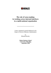Bromley, M. (2010) The role of sense-making in working across internal interfaces in a multi-national organisation. DBA thesis, Henley Business School, University of Reading.