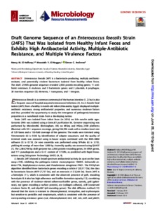 Draft genome sequence of an enterococcus faecalis strain (24FS) that was isolated from healthy infant feces and exhibits high antibacterial activity, multiple-antibiotic resistance, and multiple virulence factors