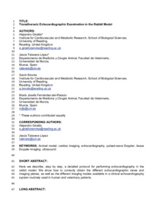 Giraldo, A., Talavera López, J., Brooks, G. and Fernández-del-Palacio, M. J. (2019) Transthoracic echocardiographic examination in the rabbit model. Journal of Visualized Experiments : JoVE (148). e59457. ISSN 1940-087X doi: 10.3791/59457