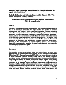 Hutchins, R. D. and Halikiopoulou, D. (2019) Enemies of liberty? Nationalism, immigration and the framing of terrorism in the agenda of the Front National. Nations and Nationalism, 26 (1). pp. 67-84. ISSN 1469-8129 doi: 10.1111/nana.12555