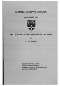 Pickering, F. P. (1980) The calendar pages of medieval service books. Reading Medieval Studies, VI. ISSN 0950-3129 (Monograph)