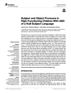 Uncontrolled Keywords Greek, autism, null subject languages, object pronouns, subject pronouns