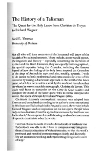 Thomas, N. E. (2008) The history of a talisman: the quest for the holy lance from Chrétien de Troyes to Richard Wagner. Reading Medieval Studies, XXXIV. pp. 209-222. ISSN 0950-3129