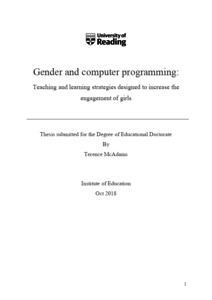 McAdams, T. (2018) Gender and computer programming: teaching and learning strategies designed to increase the engagement of girls. EdD thesis, University of Reading.