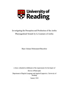 Binasfour, H. S. M. (2018) Investigating the perception and production of the Arabic pharyngealised sounds by L2 learners of Arabic. PhD thesis, University of Reading. doi: 10.48683/1926.00084813