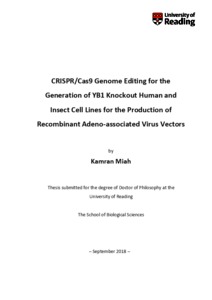 Miah, K. (2019) CRISPR/Cas9 genome editing for the generation of YB1 knockout human and insect cell lines for the production of recombinant Adeno-associated virus vectors. PhD thesis, University of Reading. doi: 10.48683/1926.00084815