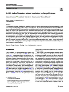 Previous studies of change blindness have suggested a distinction between detection and localisation of changes in a visual scene. Using a simple paradigm with an array of coloured squares, the present study aimed to further investigate differences in event-related potentials (ERPs) between trials in which participants could detect the presence of a colour change but not identify the location of the change (sense trials), versus those where participants could both detect and localise the change (localise trials). Individual differences in performance were controlled for by adjusting the difficulty of the task in real time. Behaviourally, reaction times for sense, blind, and false alarm trials were distinguishable when comparing across levels of participant certainty. In the EEG data, we found no significant differences in the visual awareness negativity ERP, contrary to previous findings. In the N2pc range, both awareness conditions (localise and sense) were significantly different to trials with no change detection (blind trials), suggesting that this ERP is not dependent on explicit awareness. Within the late positivity range, all conditions were significantly different. These results suggest that changes can be 'sensed' without knowledge of the location of the changing object, and that participant certainty scores can provide valuable information about the perception of changes in change blindness.