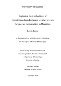 Taylor, J. (2019) Exploring the implications of climate trends and extreme weather events for species conservation in Mauritius. PhD thesis, University of Reading. doi: 10.48683/1926.00084908