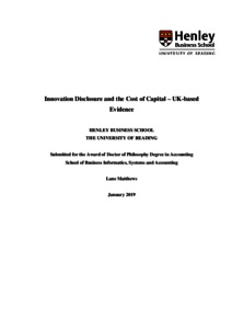 Matthews, L. (2019) Innovation disclosure and the cost of capital – UK-based evidence. PhD thesis, University of Reading.