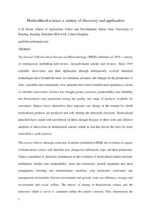 Dixon, G. R. (2019) Horticultural science-a century of discovery and application. Journal of Horticultural Science and Biotechnology, 94 (5). pp. 550-572. ISSN 1462-0316 doi: 10.1080/14620316.2019.1599700