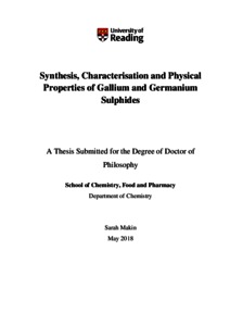 Makin, S. (2018) Synthesis, characterisation and physical properties of Gallium and Germanium Sulphides. PhD thesis, University of Reading.
