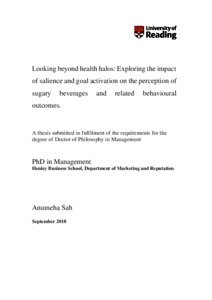 Sah, A. (2018) Looking beyond health halos: exploring the impact of salience and goal activation on the perception of sugary beverages and related behavioural outcomes. PhD thesis, University of Reading. doi: 10.48683/1926.00084954