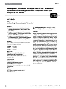 Development, validation, and application of HPLC method for quantification of antihyperuricemic compounds from Lippia nodiflora in rat plasma