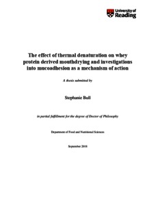 The effect of thermal denaturation on whey protein derived mouthdrying and investigations into mucoadhesion as a mechanism of action.