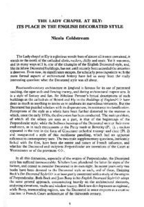 Coldstream, N. (1985) The Lady chapel at Ely: its place in the English decorated style. Reading Medieval Studies, XI. pp. 1-30. ISSN 0950-3129