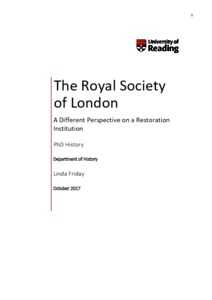 Friday, L. (2018) The Royal Society of London: a different perspective on a Restoration institution. PhD thesis, University of Reading.