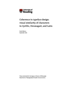 Brezina, D. (2019) Coherence in typeface design: visual similarity of characters in Cyrillic, Devanagari, and Latin. PhD thesis, University of Reading. doi: 10.48683/1926.00085141
