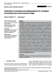 Walters, R. J. and Berger, D. (2019) Implications of existing local (mal)adaptations for ecological forecasting under environmental change. Evolutionary Applications, 12 (7). pp. 1487-1502. ISSN 1752-4571 doi: 10.1111/eva.12840
