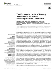 Morel, A. C., Hirons, M., Adu Sasu, M., Quaye, M., Ashley Asare, R., Mason, J., Adu-Bredu, S., Boyd, E., McDermott, C. L., Robinson, E. J. Z. ORCID: https://orcid.org/0000-0002-4950-0183, Straser, R., Malhi, Y. and Norris, K. (2019) The ecological limits of poverty alleviation in an African forest-agriculture landscape. Frontiers in Sustainable Food Systems, 3. 57. ISSN 2571-581X doi: 10.3389/fsufs.2019.00057
