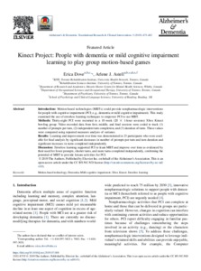 | Uncontrolled Keywords | Motion-based technology, dementia, mild cognitive impairment, Xbox Kinect, errorless learning |