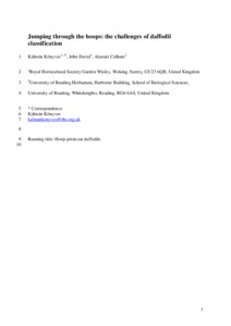 Könyves, K., David, J. and Culham, A. ORCID: https://orcid.org/0000-0002-7440-0133 (2019) Jumping through the hoops: the challenges of daffodil (Narcissus) classification. Botanical Journal of the Linnean Society, 190 (4). pp. 389-404. ISSN 0024-4074 doi: 10.1093/botlinnean/boz032