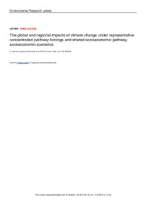 Arnell, N. ORCID: https://orcid.org/0000-0003-2691-4436, Lowe, J. A., Bernie, D. J., Nicholls, R., Brown, S., Challinor, A. and Osborn, T. (2019) The global and regional impacts of climate change under representative concentration pathway forcings and shared socioeconomic pathway socioeconomic scenarios. Environmental Research Letters, 14 (8). ISSN 1748-9326 doi: 10.1088/1748-9326/ab35a6