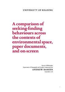 Barker, A. (2019) A comparison of seeking-finding behaviours across the contexts of environmental space, paper documents, and on-screen. PhD thesis, University of Reading. doi: 10.48683/1926.00085342