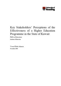Alanezi, Y. H. (2018) Key stakeholders' perceptions of the effectiveness of a higher education programme in the state of Kuwait. PhD thesis, University of Reading. doi: 10.48683/1926.00085358