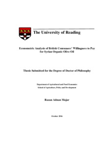 Majar, R. A. (2018) Econometric analysis of British consumers' willingness to pay for Syrian organic olive oil. PhD thesis, University of Reading.