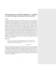 The culture of high-performance racing, whether Formula One, Nascar, or sports cars represents the continuous push for better performance. The research focuses upon understanding how stakeholders designing and building motor racing venues experience the innovation process through both new and refurbishment projects. This paper will provide a review of the literature relative to the nature of innovations within the construction setting, considering a range of theoretical and methodological approaches. The context of innovative designs and high-performance facilities serves as a novel exploration given that the nature of the facilities seems to attract these innovative solutions. Given this seeming repeatability of pursuit and success in innovation on this project type suggests that the context allows construction firms to successfully mobilize their innovative ideas and construction expertise. Using the captured data from two case study projects; Yas Marina Circuit in Abu Dhabi and the Daytona International Speedway in the USA, we explore the phenomenon around the mobilization of innovation in these contexts. Data is collected through extensive, unstructured interviews with key leadership in both projects to explore the emergent nature of innovation and the evolving facility design, construction, and operations. Innovation is born, resides and lives within a loosely and tightly knit network of stakeholders. We will connect the discursive nature of innovation in such settings and projects back to the innovation literature.