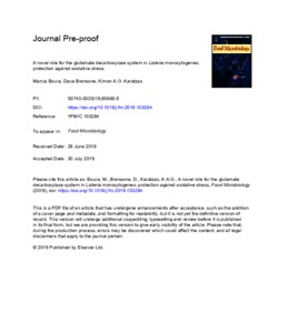 Boura, M., Brensone, D. and Karatzas, K.-A. G. (2020) A novel role for the glutamate decarboxylase system in Listeria monocytogenes; protection against oxidative stress. Food Microbiology, 85. 103284. ISSN 0740-0020 doi: 10.1016/j.fm.2019.103284