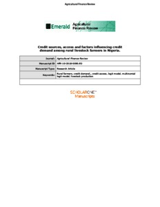 Credit sources, access and factors influencing credit demand among rural livestock farmers in Nigeria.