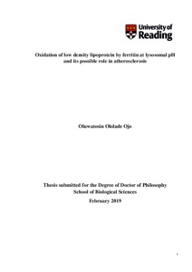 Ojo, O. O. (2019) Oxidation of low density lipoprotein by ferritin at lysosomal pH and its possible role in atherosclerosis. PhD thesis, University of Reading. doi: 10.48683/1926.00085424