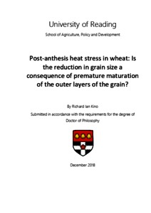 Kino, R. I. (2019) Post-anthesis heat stress in wheat: is the reduction in grain size a consequence of premature maturation of the outer layers of the grain? PhD thesis, University of Reading. doi: 10.48683/1926.00085428