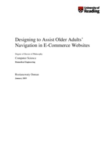 Osman, R. (2019) Designing to assist older adults’ navigation in e-commerce websites. PhD thesis, University of Reading. doi: 10.48683/1926.00085429