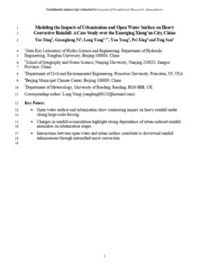 Xing, Y., Ni, G., Yang, L., Yang, Y., Xing, P. and Sun, T. ORCID: https://orcid.org/0000-0002-2486-6146 (2019) Modeling the impacts of urbanization and open water surface on heavy convective rainfall: a case study over the emerging Xiong'an city, China. Journal of Geophysical Research: Atmospheres, 124 (16). pp. 9078-9098. ISSN 2169-8996 doi: 10.1029/2019JD030359