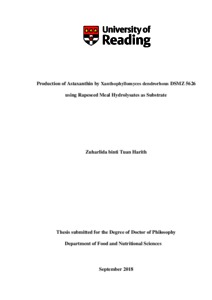 Tuan Harith, Z. b. (2019) Production of astaxanthin by xanthophyllomyces dendrorhous DSMZ 5626 using rapeseed meal hydrolysates as substrate. PhD thesis, University of Reading. doi: 10.48683/1926.00085474