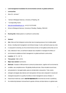 Johnston, A. S. A. (2019) Land management modulates the environmental controls on global earthworm communities. Global Ecology and Biogeography, 28 (12). pp. 1787-1795. ISSN 1466-8238 doi: 10.1111/geb.12992