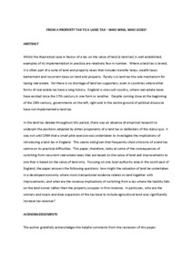 Whilst the theoretical case in favour of a tax on the value of land (a land tax) is well established, examples of its implementation in practice are relatively few in number. Where a land tax is levied, it is often part of a suite of land and property taxes that includes transfer taxes, wealth taxes betterment and recurrent taxes on land and property. Rarely is a land tax the sole mechanism for taxing real estate. Yet there is no shortage of land tax supporters, even in countries where other forms of real estate tax have a long history. England is one such country, where real estate taxes have existed since the 17th century in one form or another. Despite coming close at the beginning of the 19th century, governments on the left, right and in the centre ground of political discourse have not implemented a land tax. In the land tax debate throughout this period, there was an absence of empirical research to underpin the positions adopted by either proponents of a land tax or defenders of the status quo. It was not until 1964 that a small pilot exercise was undertaken to investigate the implications of introducing a land tax in England. This seems odd given that frequently cited criticisms of a land tax centre on its practical difficulties. This paper, therefore, looks at some of the consequences of switching from recurrent real estate taxes that are based on the value of land and improvements to one that is based on the value of land only. Focusing on one local authority area in the south east of England, the paper answers the following questions: how might the valuation of land be undertaken in a developed economy where most transactional evidence relates to land together with improvements, and what are the revenue implications of switching from a tax where the liability falls on the land owner rather than the property occupier in first instance. In particular, who are the winners and losers and does expansion of the tax base to include agricultural land uses significantly increase tax revenue?