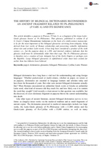 The history of bilingual dictionaries reconsidered: an ancient fragment related to pseudo-Philoxenus (P.Vars. 6) and its significance.